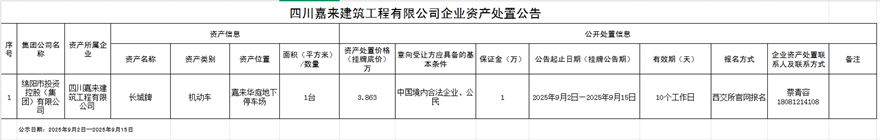 四川嘉來(lái)建筑工程有限公司企業(yè)資產(chǎn)處置公告