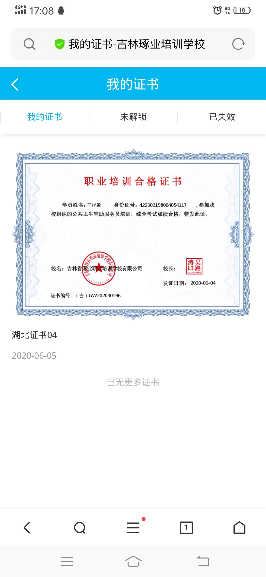 培訓內(nèi)容:認真按時完成各科學業(yè),己獲相關證書。